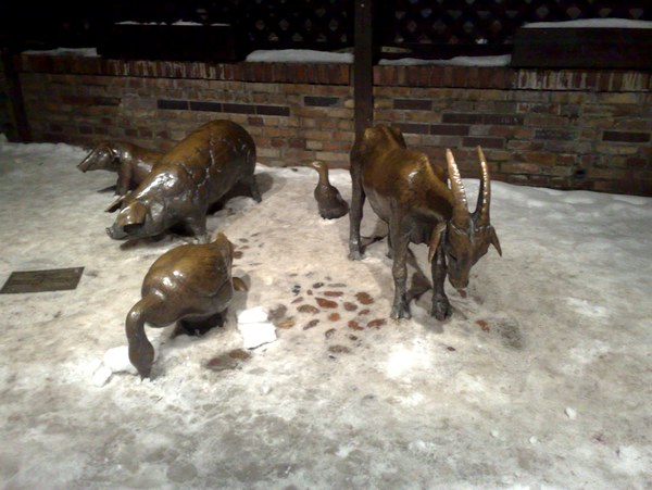 Statues d’animaux, en la mémoire des animaux abattus auparavant dans les boucheries de la ville (aujourd’hui devenues des galeries d’art)