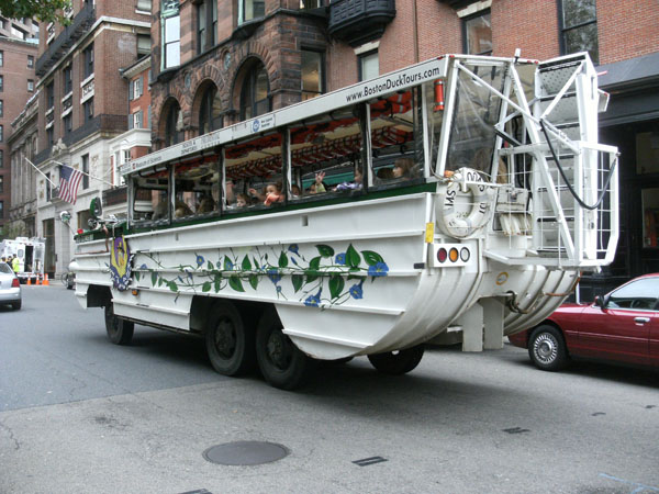 Un bus bateau. Le top pour les touristes: ca se déplace sur les routes comme sur l’eau