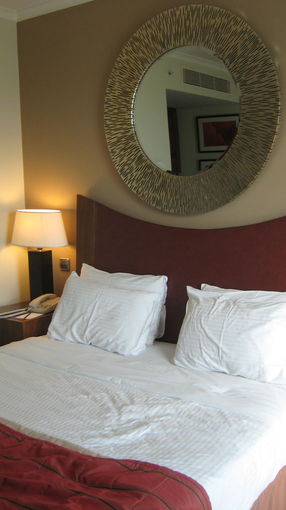 Arrivés à Lisbonne en fin d’après-midi, nous avons pu constater 2 choses : la chaleur qui y règne et le fait d’avoir intelligemment investi dans une bonne paire de basket car les trottoirs sont pavés là bas. Finalement en arrivant à l’hôtel 5 étoiles (s’il vous plait) nous avons opté pour un petit plongeon dans la piscine intérieure. Un hôtel que nous avion réservé avant de partir sur lastminute.com à des prix très compétitifs 40 € pour une personne et pour une nuit avec petit déjeuner inclus si vous réservez bien à l’avance, soit le prix d’un formule 1 chez nous !