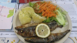 Pour se ravitailler, il y a plein de restaurant autour du château où vous pourrez déguster une de leur spécialité là bas : la sardine. Attention aux arrêtes !