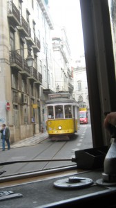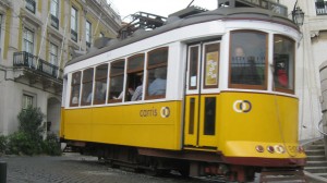 Suite à ce petit déjeuner, en traversant les rues du Baixia nous voici tout étonné de voir qu’il n’y avait pas que les bus et le métro en transport en commun mais également des « tchoutchous jaunes » soit des vieux tramways électrifiés qui arpentent les rues de Lisbonne !