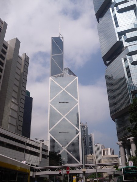 Hong-Kong à un PIB par habitant similaire à la Suisse. La ville comporte le plus grand nombre de gratte-ciel au monde (le double de New York City). Ci-dessus, le gratte-ciel du siège social de la Bank of China. A l’origine plus haut immeuble d’Asie lors de son inauguration, en 1989, il n’est plus que le 4ème immeuble… de Hong-Kong.