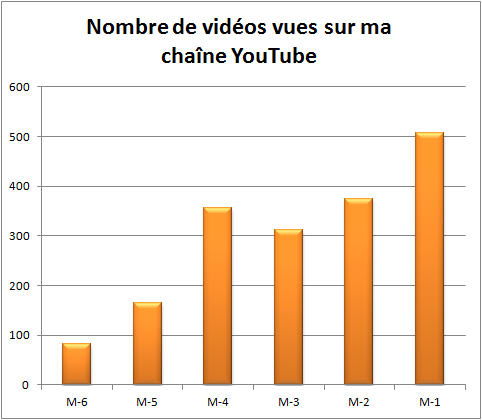Ma chaîne YouTube me fait penser penser à mes premiers sites en 2002 ou 2003. Un trafic faible, 0 euros de revenus, et des vidéos perfectibles (je m’y connais assez peu en vidéos). Mais l’audience augmente rapidement (83 vidéos vues au cours du premier mois, 7 fois plus le mois dernier) et cela ne fera qu’augmenter à l’avenir car je compte: